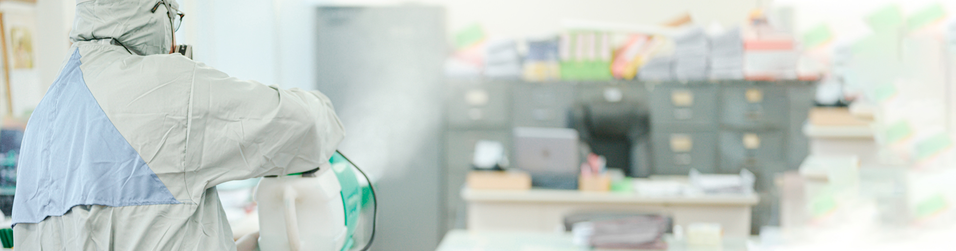 Si tienes un caso confirmado o sospechoso de COVID-19 en tus instalaciones tenemos soluciones para desinfectar y sanitizar el área, nuestros técnicos están capacitados y cuentan con todo el equipo de protección personal necesario : traje de aplicación, guantes de nitrilo, máscara fullface y filtros para vapores orgánicos.